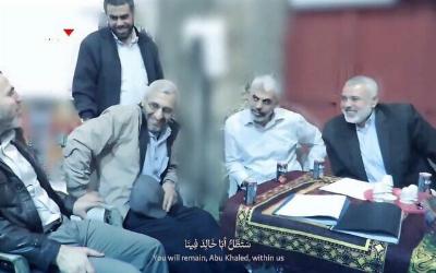 A group of former senior Hamas officials, including (seated from left) Muhammad Sinwar, Muhammad Deif, Yahya Sinwar and Ismail Haniyeh, all of whom have since been killed by Israel (Screenshot: X)