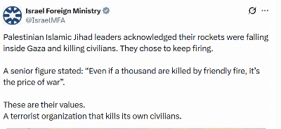 Palestinian Islamic Jihad knowingly fired faulty rockets in Gaza, killing many Palestinians