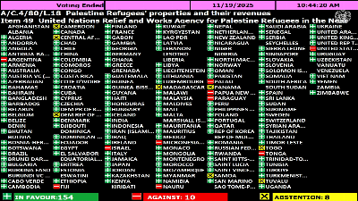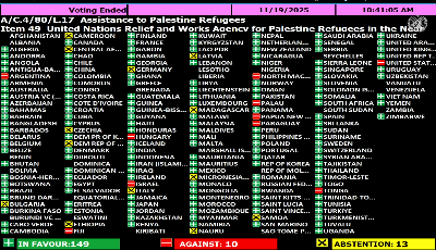 U.N. General Assembly Draft Resolution, “Assistance to Palestine refugees,” adopted 149-10-13